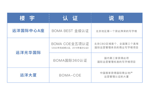在資產(chǎn)管理上,遠(yuǎn)洋集團(tuán)沉淀業(yè)主視角文化、標(biāo)準(zhǔn)化管理制度、豐富的合作資源、BOMA等國(guó)際管理標(biāo)準(zhǔn)實(shí)踐優(yōu)勢(shì),已形成標(biāo)準(zhǔn)化、可復(fù)制并可高效輸出的資產(chǎn)管理體系。