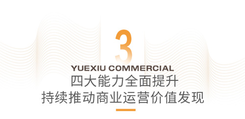 今年也將是越秀商管重點(diǎn)提升“產(chǎn)品力、招商力、運(yùn)營力和服務(wù)力”四大核心能力的發(fā)力之年,以整體經(jīng)營能力強(qiáng)化,促進(jìn)形成可持續(xù)發(fā)展的核心競爭力優(yōu)勢,推動(dòng)三大效應(yīng)價(jià)值兌現(xiàn)。