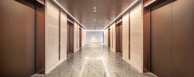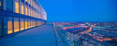 通州C01大廈總體量約6萬平方米,其中辦公總面積約57415.48平方米和2843.74平方米地上商業(yè)面積,是170米總高的超高層建筑。其地上部分36層,地下部分為4層。高低區(qū)梯廳各分設(shè)6部進(jìn)口日立高速電梯,一共12部,另有2部貨梯和2部1層向車庫的轉(zhuǎn)換梯,構(gòu)成整個(gè)項(xiàng)目的垂直交通系統(tǒng)。比較獨(dú)特的是,由于我們的裙樓1-5層為富力商業(yè),所以本項(xiàng)目的辦公樓層是自9層起, 6、7層為項(xiàng)目預(yù)留的本區(qū)域僅有的地上具備餐飲條件的員工食堂區(qū)作為入住企業(yè)的辦公配套。