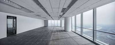 標(biāo)準(zhǔn)層的平層建筑面積約為2200平方米,劃分為11個(gè)單元,31和36層有露臺設(shè)計(jì),整層使用率約70%。交付標(biāo)準(zhǔn)為公共區(qū)域精裝修、辦公區(qū)吊頂、白墻、網(wǎng)絡(luò)地板。我們的標(biāo)準(zhǔn)層非常通透,2.9米的凈高加上落地窗無遮擋的全景采光,讓入住企業(yè)的辦公體驗(yàn)非常舒適。處于安全考慮和辦公企業(yè)的自然風(fēng)換氣需求,在空調(diào)系統(tǒng)提供新風(fēng)供給外,我們還在落地窗處采用了可開啟的通風(fēng)器設(shè)置,以提供自然風(fēng)對流的效果。根據(jù)核心筒的位置,每層分設(shè)有一套男女衛(wèi)生間,其中女4男3+3的配置,并配備一個(gè)獨(dú)立的茶水間,并且25層起每層還另設(shè)有一個(gè)獨(dú)立的行政衛(wèi)生間。