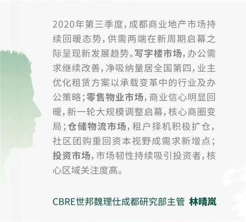 隨著成渝經(jīng)濟(jì)圈建設(shè)帶來的新一輪戰(zhàn)略機遇,城市擴容、產(chǎn)業(yè)鏈升級、人才導(dǎo)入等逐步推進(jìn),成都商業(yè)地產(chǎn)的中長期價值將被更多投資者看好。預(yù)計人民幣基金機構(gòu)以及自用為目的的投資者將持續(xù)活躍,核心區(qū)域現(xiàn)金流穩(wěn)定的寫字樓是投資者最為追捧的投資標(biāo)的。此外,如倉儲物流、學(xué)校教育地產(chǎn)等也備受關(guān)注。