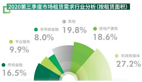 房地產(chǎn)建筑緊追其后,占比18.6%,市場持續(xù)錄得房企、地產(chǎn)交易服務(wù)及建筑設(shè)計類企業(yè)的租賃成交案例。但隨著融資環(huán)境不斷收緊,擴張需求或?qū)⒎啪。傳統(tǒng)金融業(yè)的活躍度繼續(xù)攀升,占比較二季度上升8.1個百分點至16.5%,市場持續(xù)錄得銀行及保險頭部企業(yè)的新租、擴租及升級案例,預(yù)計下季度仍有大面積成交落地。二級租賃市場方面,盡管聯(lián)合辦公及包租公司憑借產(chǎn)品的便捷性、差異性積極承接小面積租賃需求實現(xiàn)較高入駐率,但另一方面市場隱形風(fēng)險上升,部分二房東因資金流動性枯竭而存違約風(fēng)險。