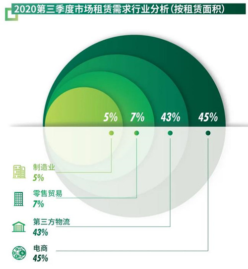租戶擇機積極布局推高需求活躍度。按行業(yè)看,電商和第三方物流主導(dǎo)季內(nèi)去化,分別占比新增需求的45.0%、43.5%。其中,租戶抓住租金調(diào)整的窗口期,戰(zhàn)略性擴倉的長租占比75%,包括數(shù)宗電商企業(yè)在自建庫周邊布局衛(wèi)星倉的成交案例等;而電商及相關(guān)第三方物流為備戰(zhàn)“雙十一”購物節(jié)的短租占比25%。