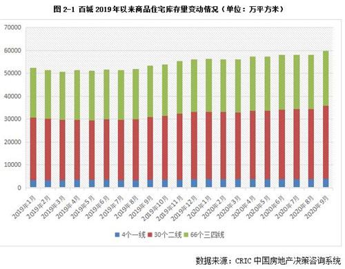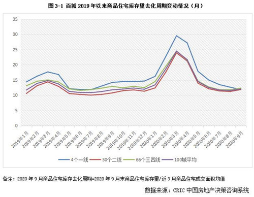 表3-1 百城2020年9月商品住宅庫存量去化周期和同環(huán)比變動情況(單位:月)(略)