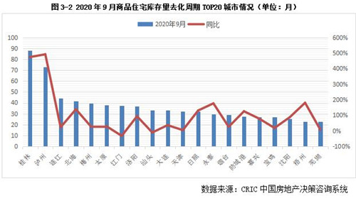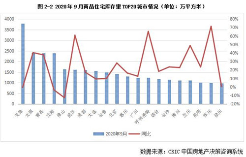 圖2-3 2020年9月商品住宅庫存量同比上漲TOP20城市情況(略)