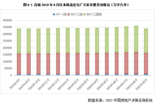 表4-2 百城2020年9月商品住宅廣義庫存量和變動情況(單位:萬平方米)(略)
