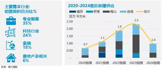 高力國際近日發(fā)布深圳寫字樓市場報(bào)告指出,2020年第三季度深圳寫字樓市場新增供應(yīng)超過30萬平方米,全部來自前海,共四棟全新寫字樓。大量新項(xiàng)目集中入市,推動(dòng)全市租金進(jìn)一步環(huán)比下行2.9%到203元/平方米/月。專業(yè)服務(wù)成為租賃活動(dòng)最為活躍的行業(yè),成交數(shù)量占比達(dá)到全市的百分之三十五。
