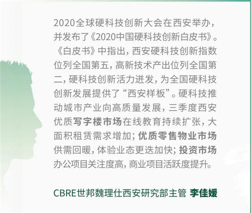 CBRE西安投資及資本市場(chǎng)主管郝亞文表示,“隨著國(guó)內(nèi)疫情的有效控制,投資者信心正逐步恢復(fù)。西安持續(xù)發(fā)揮人才優(yōu)勢(shì),吸引越來(lái)越多北上廣深的機(jī)構(gòu)企業(yè)關(guān)注并設(shè)立西北總部。同時(shí)市場(chǎng)上積極活躍的酒店物業(yè)收購(gòu)意愿也彰顯了對(duì)西安未來(lái)旅游市場(chǎng)的良好預(yù)期。在特殊的大環(huán)境下,第三季度成為經(jīng)濟(jì)復(fù)蘇的起點(diǎn),相信第四季度會(huì)有更好的反彈和更多的投資機(jī)會(huì)。”