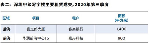 第三季度深圳甲級寫字樓投資市場沒有錄得大宗整購交易。