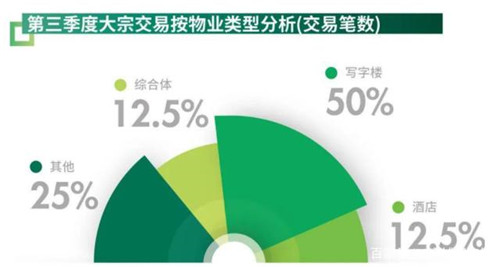 其中寫字樓大宗交易共計5筆,仍是最為活躍的物業(yè)類型。主要交易包括國海證券以近14億人民幣收購上海綠地外灘中心C1棟寫字樓,用于自用;黑石集團以12億人民幣收購香溢花城三期第四棟,用于投資。