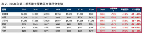 各區(qū)零售物業(yè)市場(chǎng)空置率三季度因此仍升至兩位數(shù),其中銅鑼灣區(qū)空置率上升幅度最大,環(huán)比從7.9%飆升至13.2%,租金也與中環(huán)一起,環(huán)比分別下跌7.9%及7.8%,同比分別下跌41.3%及40.8%,位居所有區(qū)域跌幅的前兩位。
