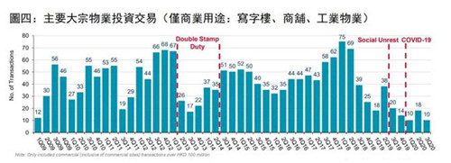 在本地、內(nèi)地、海外三類投資者中,內(nèi)地投資者需求相對(duì)較為平穩(wěn),主導(dǎo)了本季半數(shù)大額成交,是市場(chǎng)的主力;各類物業(yè)中,工業(yè)物業(yè)最為活躍,全棟工業(yè)大廈買賣有不少出現(xiàn)。商鋪市場(chǎng)受疫情打擊,交易量持續(xù)為零。鑒于市場(chǎng)氣氛依舊低迷,今年大宗交易成交或創(chuàng)十年來(lái)的最低。