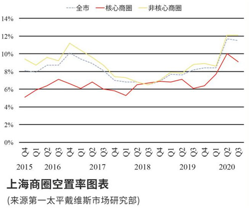 一些成熟餐飲品牌開始回歸核心商圈,主流服飾品牌也有新店開出。核心商圈空置率下降幅度更為明顯,其中南京東路及淮海中路商圈改善最為顯著,分別下降2.8和1.4個百分點。