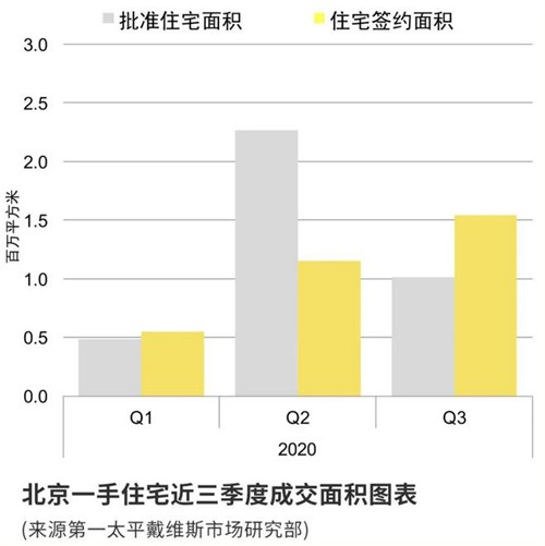 三季度,正逢后疫情階段第一個金九銀十銷售旺季,北京市一手商品住宅市場顯示出良好的銷售業(yè)績,當季一手住宅成交面積超過154萬平方米,環(huán)比上升33.5%。