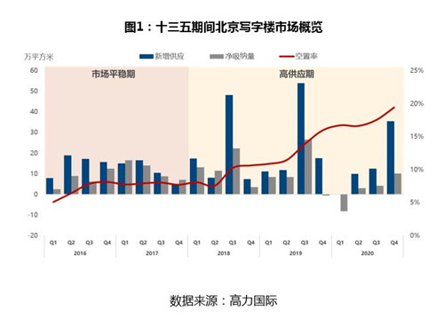 高力國際華北區(qū)董事總經(jīng)理嚴(yán)區(qū)海認(rèn)為,2020年是十三五的收官之年,如果用一句話形容十三五期間的北京寫字樓市場的話,就是"在三期疊加的大環(huán)境下,天量供應(yīng)和疫情肆虐持續(xù)推高市場空置率,租金出現(xiàn)合理回調(diào),城市競爭力進(jìn)一步增強(qiáng)"。2021年又是十四五的開局之年,如果用一句話預(yù)測十四五期間的北京寫字樓市場的話,就是"在服務(wù)業(yè)擴(kuò)大開放和自貿(mào)試驗(yàn)區(qū)的兩區(qū)建設(shè)的大背景下,改革開放和創(chuàng)新引領(lǐng)推動(dòng)需求回升,市場進(jìn)入去化周期,北京進(jìn)入高質(zhì)量發(fā)展階段"。