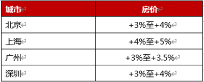 · 預(yù)計(jì)中國(guó)內(nèi)地住宅市場(chǎng)一線城市的房?jī)r(jià)漲幅將在3%-5%之間,超過三四線城市