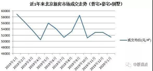 今年1月北京新房市場(chǎng)成交面積34.06萬(wàn)平方米,成交均價(jià)51337元/平方米,環(huán)比2019年12月價(jià)格下調(diào)1485元/平方米,價(jià)格有所下滑。套均價(jià)599萬(wàn)元/套,環(huán)比2019年12月減少128萬(wàn)元/套,同比2019年1月減少305萬(wàn)元/套。