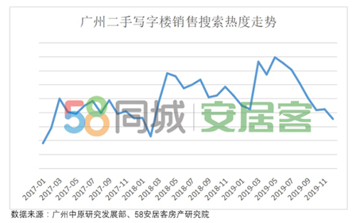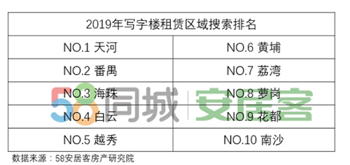 值得注意的是,58同城、安居客《2019年廣州寫字樓現(xiàn)狀報告》報告顯示,與核心商務(wù)區(qū)寫字樓吸納量大幅下滑形成對比,2019年廣州全市寫字樓線上搜索量僅下滑6.1%,搜索總量逼近上海及深圳。這說明,廣州的中小企業(yè)活躍,寫字樓租賃需求有較好支撐,部分需求或受制于核心商務(wù)區(qū)較低的空置率未能釋放。