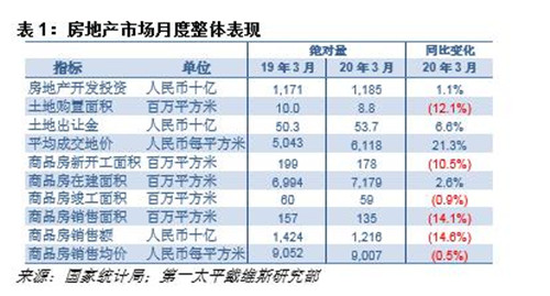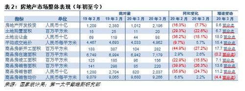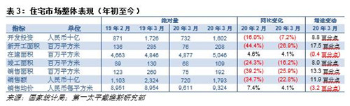 2020年1-3月,全國房地產(chǎn)開發(fā)投資額累計人民2.2萬億元,同比減少7.7%。同期,全國房地產(chǎn)開發(fā)企業(yè)土地購置面積達(dá)1,970萬平方米,較去年同期的2,540萬平方米減少22.6%;土地出讓金累計人民幣980億元,同比減少18.1%;土地單價同比下降5.7%至每平方米人民幣4,962元。新開工面積同比減少27.2%至2.82億平方米。
