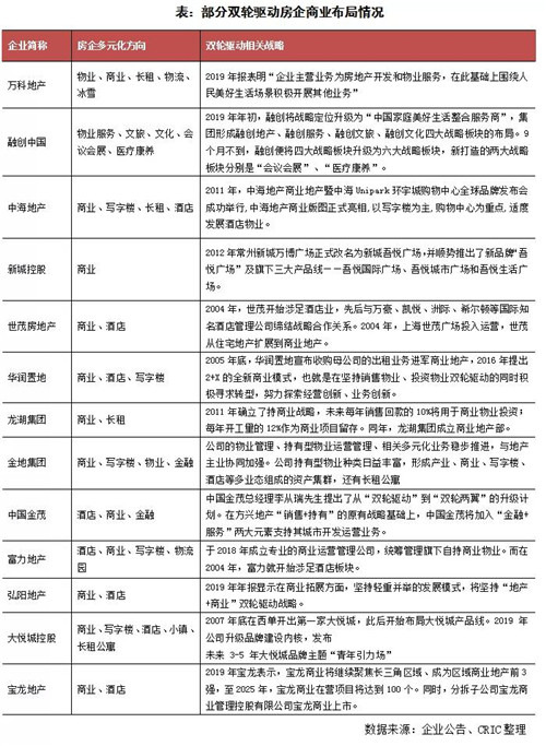 存量時代下房企積極布局多元化,部分形成雙輪驅(qū)動