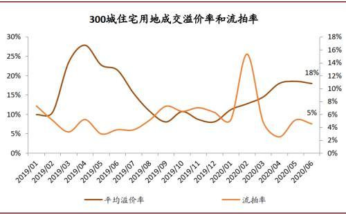 圖表: 300城住宅用地成交溢價(jià)率自年初以來持續(xù)上行,6月前兩周已升至18%