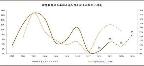 圖表: 銷售推算竣工面積與龍頭房企竣工面積同比增速比較