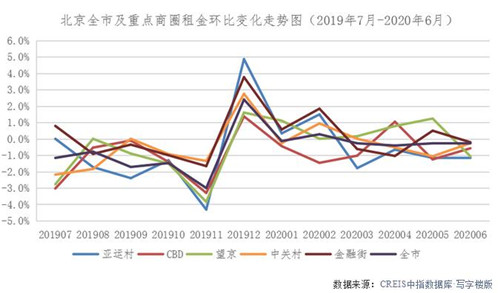 在空置率持續(xù)位于高位,租戶退租或縮租造成空置面積無法快速被填充的壓力下,租金也出現(xiàn)繼續(xù)下滑的情況,所有區(qū)域租金均出現(xiàn)不同程度的跌幅。據(jù)統(tǒng)計,亞運村商圈二季度租金環(huán)比下降3.0%,中關村商圈租金環(huán)比下降1.9%,中央商務區(qū)商圈租金環(huán)比下降0.8%。