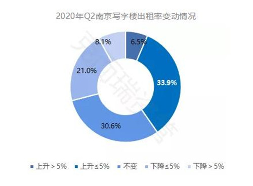 一季度南京GDP同比增長(zhǎng) 1.6% ,是17個(gè)萬(wàn)億GDP城市中唯一實(shí)現(xiàn)一季度正增長(zhǎng)的城市,整體經(jīng)濟(jì)環(huán)境穩(wěn)定,為寫(xiě)字樓資產(chǎn)價(jià)值保持穩(wěn)定提供基礎(chǔ)。二季度,近 80% 項(xiàng)目資產(chǎn)價(jià)值變動(dòng)幅度不超過(guò) 5% ,資產(chǎn)價(jià)值保持不變的項(xiàng)目占比 9.7% ,上升幅度不超過(guò) 5% 的項(xiàng)目占比 33.9% ,下降幅度不超過(guò) 5% 的項(xiàng)目占比32.3% 。