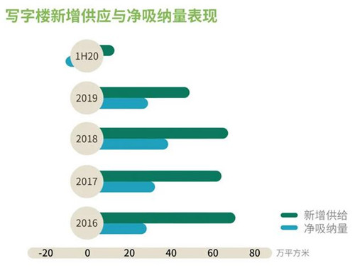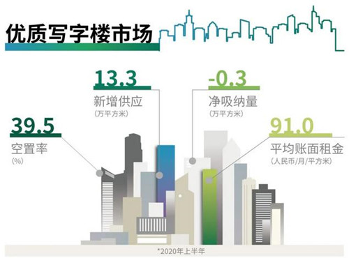 2020年上半年,武漢優(yōu)質(zhì)寫字樓市場錄得位于光谷中心城的三棟寫字樓交付使用,使總存量超過500萬平方米。