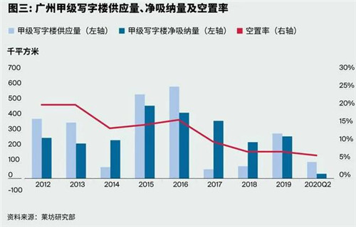 萊坊發(fā)布2020年第二季度《廣州寫字樓市場報告》。報告顯示,2020年第二季度,星寰國際商業(yè)中心的上市為廣州甲級寫字市場帶來90,000平方米的新增供應(yīng),將廣州甲級寫字樓存量推至590.4萬平方米。