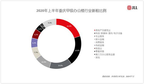· 房地產(chǎn)建筑業(yè)長(zhǎng)期主導(dǎo)重慶辦公需求。上半年,重慶甲級(jí)辦公樓新租面積中20.0%來自房地產(chǎn)建筑行業(yè),其中自用與租賃需求并存。伴隨成渝雙城經(jīng)濟(jì)圈鼓勵(lì)重慶與成都兩市相向發(fā)展,未來高新區(qū)、西部科學(xué)城將進(jìn)入集中開發(fā)階段,帶動(dòng)房地產(chǎn)投資市場(chǎng)發(fā)展。房地產(chǎn)建筑行業(yè)仍將繼續(xù)在后疫情時(shí)期成為重慶辦公需求四大支柱之一。