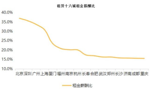 隨著外來人口規(guī)模不斷擴(kuò)大,土地資源和社會公共資源極度稀缺,薪資上調(diào)的速度追不上房租上漲的尾巴,居住成本一路走高,一線城市中,北京租金薪酬比超35%位居16城首位,居住壓力不言而喻。