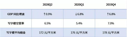 2020年上半年,廣州GDP增速為-2.7%,按季度來(lái)看,目前正處于L型的底部。寫(xiě)字樓市場(chǎng)表現(xiàn)相比大約有一個(gè)季度左右的延遲,例如今年第一季度空置率沒(méi)有因?yàn)橐咔樯仙窍陆,原因就是去年年底談好的租約大多沒(méi)有受疫情推遲;第二季度空置率上升的原因是因?yàn)橛胁簧倨髽I(yè)因疫情壓力而退租,以及新增供應(yīng)入市。因此,第三季度開(kāi)始,GDP增速恢復(fù)對(duì)寫(xiě)字樓市場(chǎng)的影響會(huì)將出現(xiàn)。