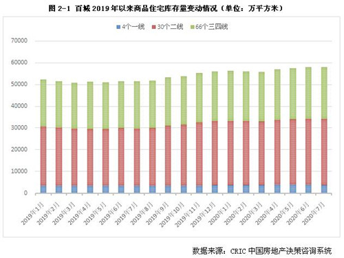 狹義庫(kù)存:百城5.7億平方米高位波動(dòng),一線環(huán)比微降1%,二三線持平