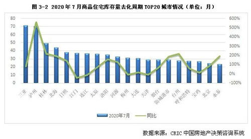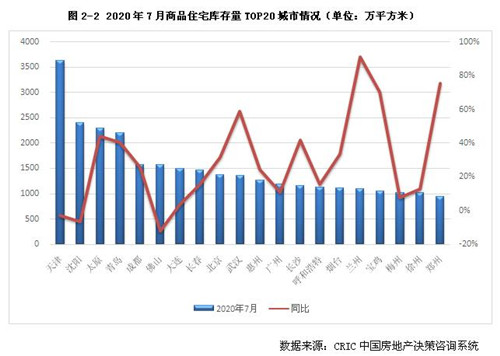 據(jù)CRIC監(jiān)測(cè)數(shù)據(jù),2020年7月百城商品住宅庫(kù)存量達(dá)到了57998萬(wàn)平方米,與上月大體持平,同比則增長(zhǎng)13%,持續(xù)高位波動(dòng)。一方面,年中沖刺季剛過(guò),據(jù)CRIC數(shù)據(jù)監(jiān)測(cè),本月供求環(huán)比均迎來(lái)小幅回落,同比已然轉(zhuǎn)正,成交復(fù)蘇動(dòng)能略有不足;另一方面,從當(dāng)前政策走向來(lái)看,已由前期紓困逐步回歸“房住不炒”,“三穩(wěn)”預(yù)期,對(duì)于局部過(guò)熱的市場(chǎng),諸如杭州、寧波、南京和東莞等相繼加碼調(diào)控,深圳政策力度最為嚴(yán)苛。不得不說(shuō),隨著政策的持續(xù)發(fā)酵,前期積壓的購(gòu)房需求釋放殆盡,后期的成交增長(zhǎng)也會(huì)略顯乏力。