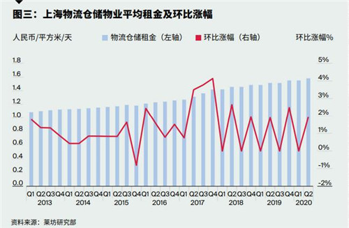 第二季度,上海物流倉儲市場有較為明顯的回暖,全市平均租金環(huán)比增長1.9%至每天每平方米人民幣1.58元。其中保稅倉庫租金維持在每天每平方米人民幣1.4元,非保稅倉庫租金環(huán)比增長3%至每天每平方米人民幣1.65元。