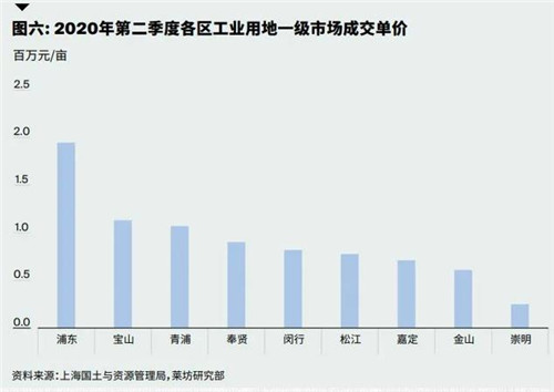 萊坊董事、上海及北京研究及咨詢部主管楊悅晨表示,從成交幅數(shù)來看,浦東在第二季度共成交11幅工業(yè)用地,占比超過30%。從成交面積來看,第二季度崇明區(qū)僅成交1 幅地塊,該地塊由滬東中華造船(集團)有限公司摘得,成交面積為142萬平方米。由于該地塊為2020年上半年出讓的最大工業(yè)用地,占第二季度全市總成交面積的近50%。因此,崇明在第二季度成交面積排名中位居首位。浦東新區(qū)則位居第二位,成交面積為40萬平方米,占全市總成交面積的14%。從成交價格來看,第二季度工業(yè)用地平均成交地價最高的是浦東新區(qū),土地單價達每畝人民幣195萬元。