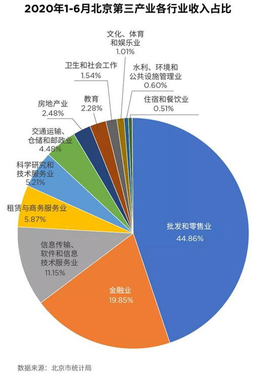 在今年上半年北京第三產(chǎn)業(yè)中,批發(fā)零售、金融、信息技術(shù)和租賃與商務(wù)服務(wù)業(yè)所占份額分居前四位,總收入占比分別為44.8%,19.85%, 11.15%級5.87%。批發(fā)零售類收入雖然占比高,但這類企業(yè)歷來對寫字樓面積的需求低,而剩下的三個行業(yè)則一直以來都是北京寫字樓需求的主力,此次雖然疫情來勢洶洶,但這三個行業(yè)在北京的表現(xiàn)依然穩(wěn)定。