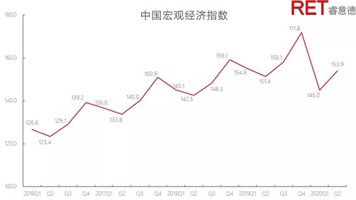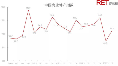 2020年第二季度,中國商業(yè)地產(chǎn)指數(shù)環(huán)比顯著增長,同比回落幅度收窄。伴隨著總體經(jīng)濟(jì)穩(wěn)步復(fù)蘇,實體商業(yè)也迎來消費回暖趨勢。