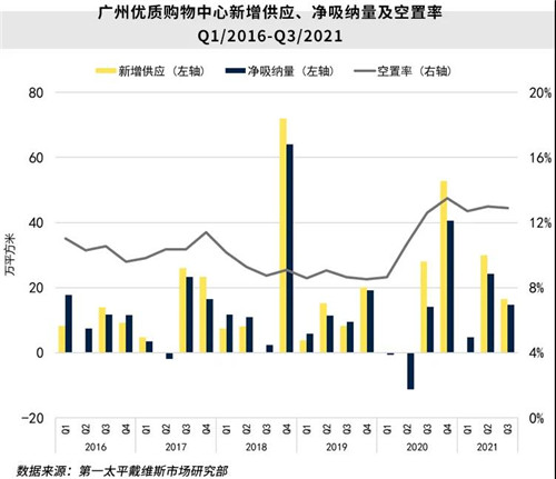 2021年第四季度,全市將迎來兩個購物中心,預(yù)計為市場帶來26.0萬平方米新增供應(yīng),兩項目分別位于白云、黃埔子市場。