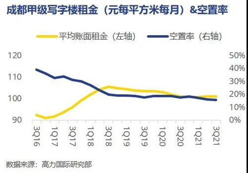 高力國際近日發(fā)布三季度成都寫字樓市場報告指出,三季度,成都寫字樓市場平均租金穩(wěn)定,總體上環(huán)比幾近持平,報人民幣101.0元每平方米每月;全市空置率環(huán)比下降0.4個百分點至15.7%。