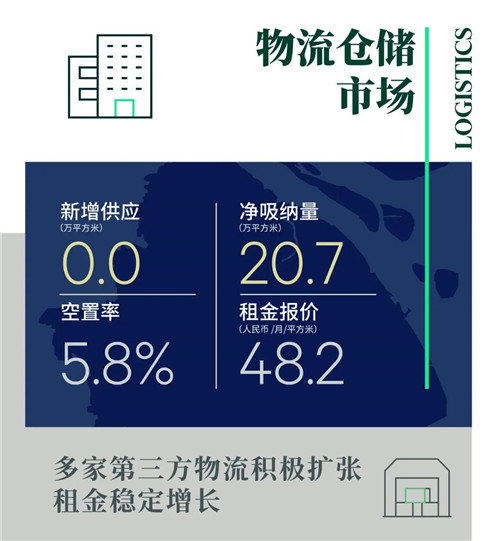 第三季度上海物流市場(chǎng)無新增供應(yīng)。第三方物流持續(xù)引領(lǐng)市場(chǎng)需求,松江、奉賢與金山分別錄得若干第三方物流公司的新租擴(kuò)租需求。隨著制造業(yè)與零售業(yè)高質(zhì)量發(fā)展,第三方物流也不斷打破地域限制,打造跨區(qū)域,多網(wǎng)點(diǎn)的縱深業(yè)務(wù)布局,成為倉儲(chǔ)物流強(qiáng)有力的支撐。同時(shí)隨著購物消費(fèi)節(jié)日的臨近,大型電商的需求增速回升,部分區(qū)域錄得短租成交。從區(qū)域來看,金山、奉賢季內(nèi)迎來大面積去化,季末全市空置率環(huán)比下降3.4個(gè)百分點(diǎn)至5.8%。在供不應(yīng)求且多個(gè)子市場(chǎng)長期保持滿租的狀態(tài)下,全市平均租金環(huán)比增長至每月每平方米48.2元。