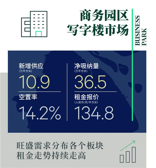 CBRE華東區(qū)顧問及交易服務(wù)|辦公樓部負(fù)責(zé)人張?jiān)奖硎荆?021年寫字樓需求持續(xù)升溫的表現(xiàn)顯示了上海作為國家對(duì)外開放的窗口城市良好的經(jīng)濟(jì)基本面。在優(yōu)質(zhì)新增供應(yīng)放量和戰(zhàn)略新興資本加持的背景下,各類企業(yè)在今年加速戰(zhàn)略性發(fā)展與房地產(chǎn)布局,如科技和互聯(lián)網(wǎng)企業(yè)持續(xù)擴(kuò)張,而頭部金融、醫(yī)藥企業(yè)布局也明顯加速,進(jìn)一步助力寫字樓去化。此外,浦東‘引領(lǐng)區(qū)’新政落地已逐步為區(qū)域市場(chǎng)吸引更多外資金融、專業(yè)服務(wù)等行業(yè)需求,第三季度浦東各板塊齊發(fā)力,需求實(shí)現(xiàn)環(huán)比上漲近90%,外資占比明顯提升。未來6個(gè)月,寫字樓市場(chǎng)預(yù)計(jì)將有69萬左右新增體量入市,包括期待已久的靜安合生項(xiàng)目MOHO和前灘信德中心,隨著即將開通的14號(hào)線帶動(dòng)寫字樓板塊間通達(dá)性再升級(jí),全市全年凈吸納量將創(chuàng)新高,租金有望持續(xù)提升。