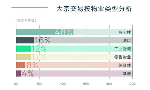 寫字樓物業(yè)仍居投資物業(yè)類型的主導(dǎo)地位,占比48%,其中近六成為商務(wù)園區(qū)物業(yè)。自用買家需求旺盛,傳統(tǒng)寫字樓新興板塊的物業(yè)備受科技與制造業(yè)公司之青睞,如前程無憂與雅戈?duì)柤瘓F(tuán)分別在晶耀前灘及虹橋匯購置總部樓宇;另一方面,得益于國內(nèi)高科技行業(yè)的蓬勃發(fā)展,商務(wù)園區(qū)市場(chǎng)的租賃表現(xiàn)在疫情中率先反彈,使得其對(duì)于投資者的吸引力正在持續(xù)增強(qiáng),位于漕河涇板塊的凱科國際大廈季內(nèi)由內(nèi)資基金完成收購。伴隨穩(wěn)定的消費(fèi)復(fù)蘇,酒店及零售類物業(yè)的成交也愈發(fā)活躍,分別占比16%與12%。此外,綜合體項(xiàng)目領(lǐng)航社與世紀(jì)盛薈廣場(chǎng)相繼由地產(chǎn)公司完成交易;作為另類資產(chǎn)的數(shù)據(jù)中心錄得本季度單筆最高成交金額,普洛斯60億收購松江互聯(lián)網(wǎng)數(shù)據(jù)中心50.1%股權(quán)。投資策略方面,投資者依舊偏好具有穩(wěn)定現(xiàn)金流的物業(yè)資產(chǎn),季內(nèi)交易仍以核心增值型為主,占比69%;而在城市更新的加速進(jìn)程下,增值型投資位居第二,占比23%。