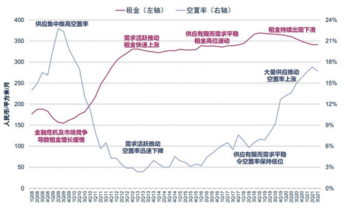 7月2日,國務(wù)院辦公廳印發(fā)《關(guān)于加快發(fā)展保障性租賃住房的意見》,從土地支持、優(yōu)化行政審批、資金支持、減稅降費(fèi)和金融支持等五方面入手,明確保障性租賃住房基礎(chǔ)制度和支持政策,保障性租賃住房再次迎來重大政策支持。8月31日,國新辦就"努力實(shí)現(xiàn)全體人民住有所居有關(guān)情況"舉行發(fā)布會(huì),在房住不炒和住有所居的新基調(diào)下,房地產(chǎn)市場(chǎng)未來將形成"政府-市場(chǎng)"并行、租售并舉的新局面。而在北京高端住宅租賃市場(chǎng)方面,全市服務(wù)式公寓市場(chǎng)迎來一個(gè)新增項(xiàng)目入市,受此影響,三季度服務(wù)式公寓市場(chǎng)的空置率環(huán)比上升3.6個(gè)百分點(diǎn)至20.3%,平均租金為人民幣每平方米每月248元。