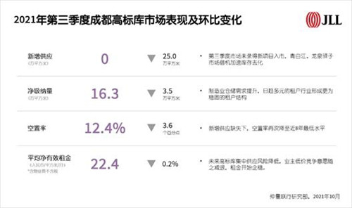 雖然自2020年下半年至2021年第三季度,青白江和龍泉驛子市場(chǎng)聚集了全市86%(56.7萬(wàn)平方米)的新增供應(yīng),面臨短期集中供應(yīng)壓力。但兩個(gè)子市場(chǎng)卻展示出良好的高標(biāo)庫(kù)消納能力,憑借大批新入市且高性價(jià)比的優(yōu)質(zhì)可租賃倉(cāng)庫(kù),青白江和龍泉驛子市場(chǎng)成為了眾多快運(yùn)、社區(qū)及生鮮電商、傳統(tǒng)電商等大面積倉(cāng)儲(chǔ)需求租戶的擴(kuò)租及新租首選。同期高標(biāo)庫(kù)凈吸納量達(dá)到77.1萬(wàn)平方米,帶動(dòng)區(qū)域空置率持續(xù)回落。截至第三季度末,仲量聯(lián)行數(shù)據(jù)顯示,龍泉驛子市場(chǎng)空置率同比下降20.6個(gè)百分點(diǎn)至8.8%,為近8年最低水平。全市整體空置率也于第三季度降至12.4%,環(huán)比下降3.6個(gè)百分點(diǎn),市場(chǎng)平均租金隨之企穩(wěn)。