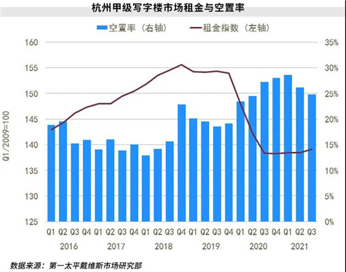 據(jù)第一太平戴維斯近日發(fā)布的杭州商辦市場(chǎng)報(bào)告,杭州寫字樓市場(chǎng)積極去化存量,前三季度凈吸納量已超2020年全年;零售物業(yè)市場(chǎng)大體量新項(xiàng)目出租表現(xiàn)亮眼,拉低市場(chǎng)空置率。