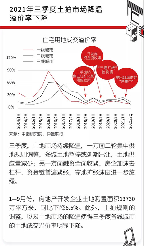仲量聯(lián)行近日發(fā)布2021年第三季度全國住宅地產(chǎn)市場報告指出,隨著信貸環(huán)境收緊加之調(diào)控政策加碼,房價漲幅出現(xiàn)回落;土拍市場降溫,溢價率下降;新開工面積增速下滑顯著,住宅投資增速進一步收窄。