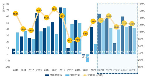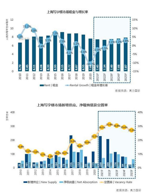 高力國(guó)際指出,2021-22年上海寫(xiě)字樓新增供應(yīng)將迎來(lái)高峰,年均有超過(guò)200萬(wàn)平方米的新增供應(yīng)量入市,將使市場(chǎng)空置率進(jìn)一步上揚(yáng),租金也將承受較大壓力,“以?xún)r(jià)換量”或?qū)⒊蔀槲磥?lái)兩年辦公樓租賃市場(chǎng)的主要策略。