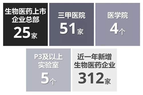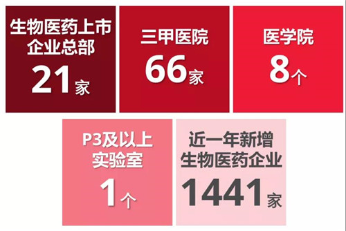 中部地區(qū)現(xiàn)有25家生物醫(yī)藥上市企業(yè)總部,51家三甲醫(yī)院,4個醫(yī)學院(在校學生64,507位),P3及以上實驗室5個。近一年全區(qū)新增312家生物醫(yī)藥企業(yè)。